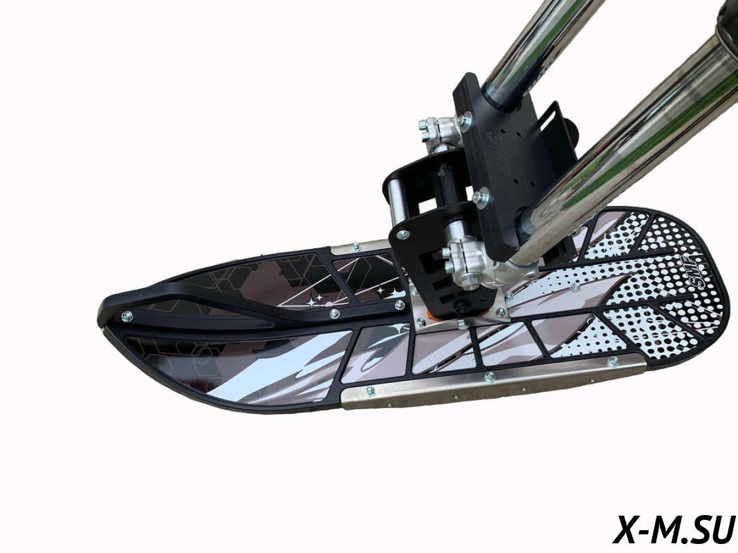 Тормоз интегрирован в лонжерон, полностью изолирован от внешней среды, отсутствует контакт со снегом. Дисковый, гидравлический, двухпоршневой суппорт. Тормозная гидравлическая магистраль 1600мм, армированный тефлон. В комплекте поставляется полностью прокачанная тормозная система с установленной тормозной машинкой.